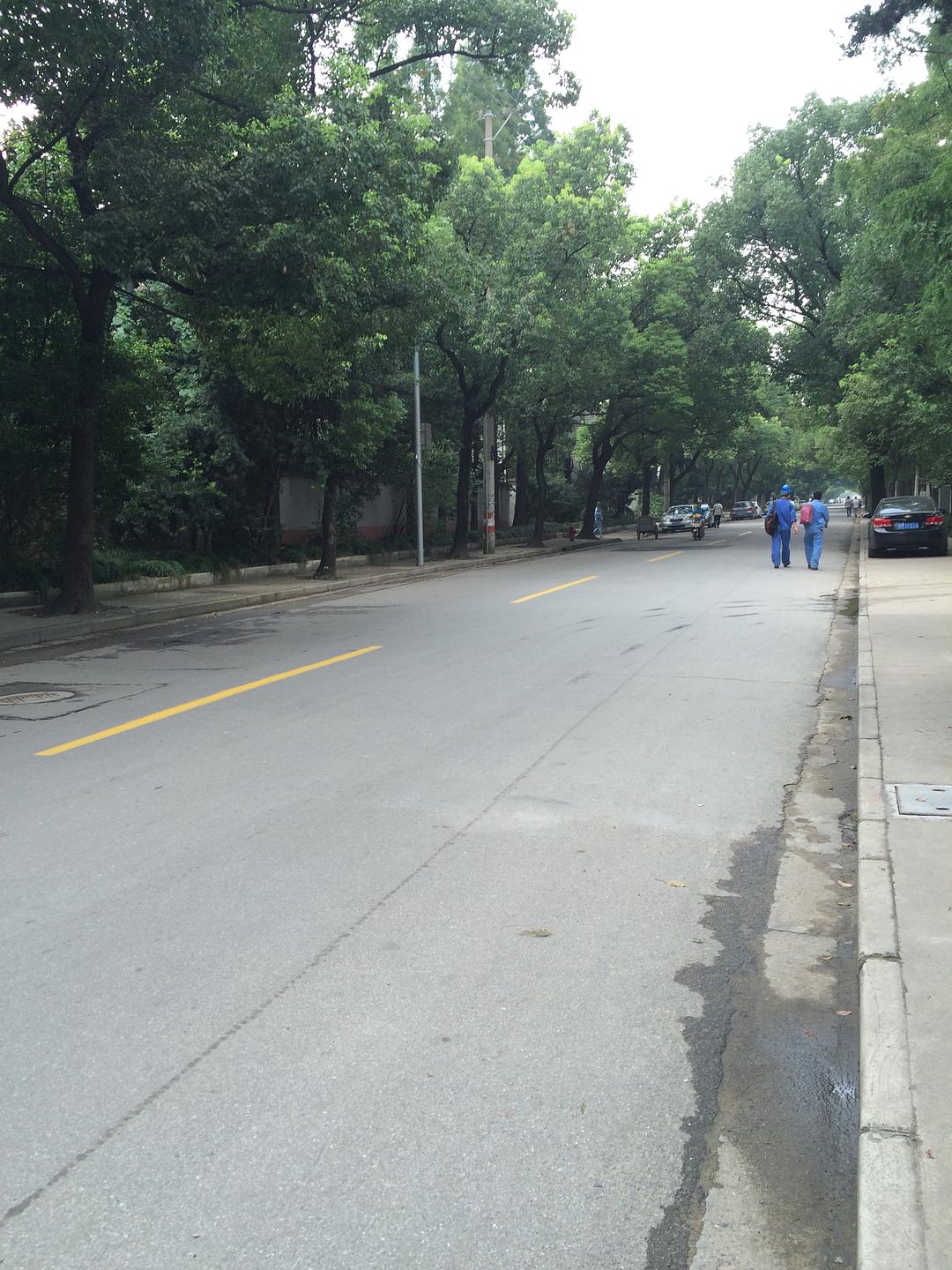 笔直的林荫大道,如果没有两边的工厂发出的噪音和异味以及偶尔经过的大卡车排放的尾气和扬尘,环境还算不错。