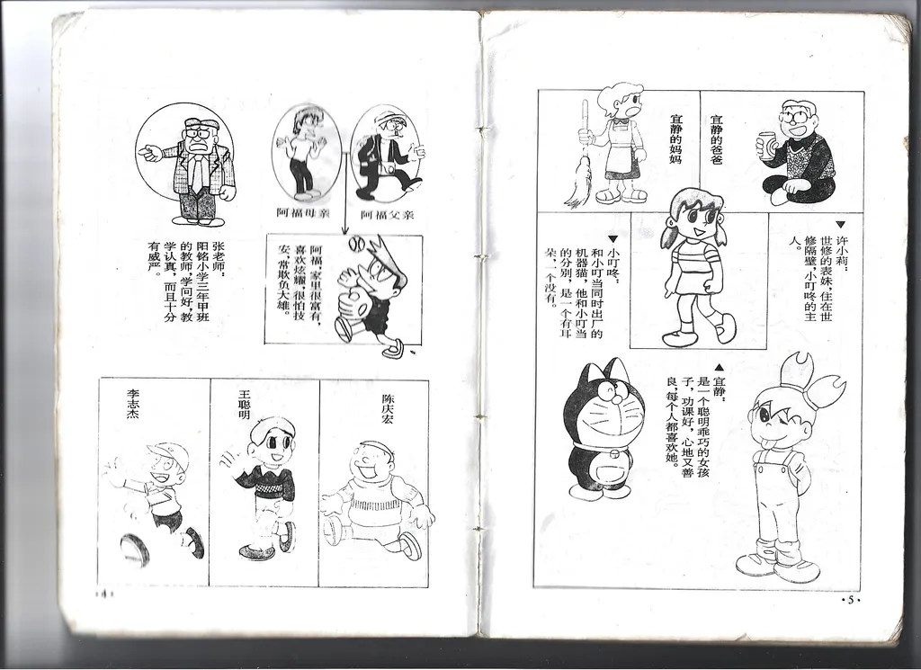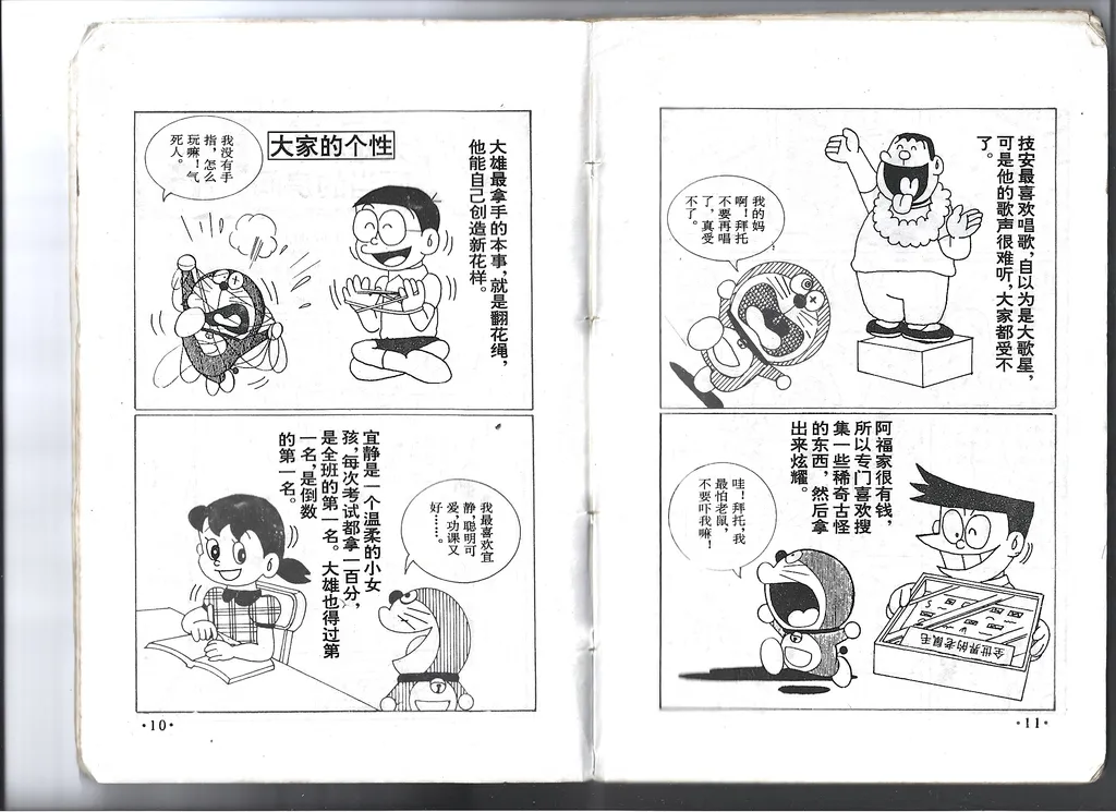 阳铭版的一大特色是,每一本开头有人物介绍板块,还有「小叮当身体秘密档案」和「大雄和小叮当的房间」介绍。