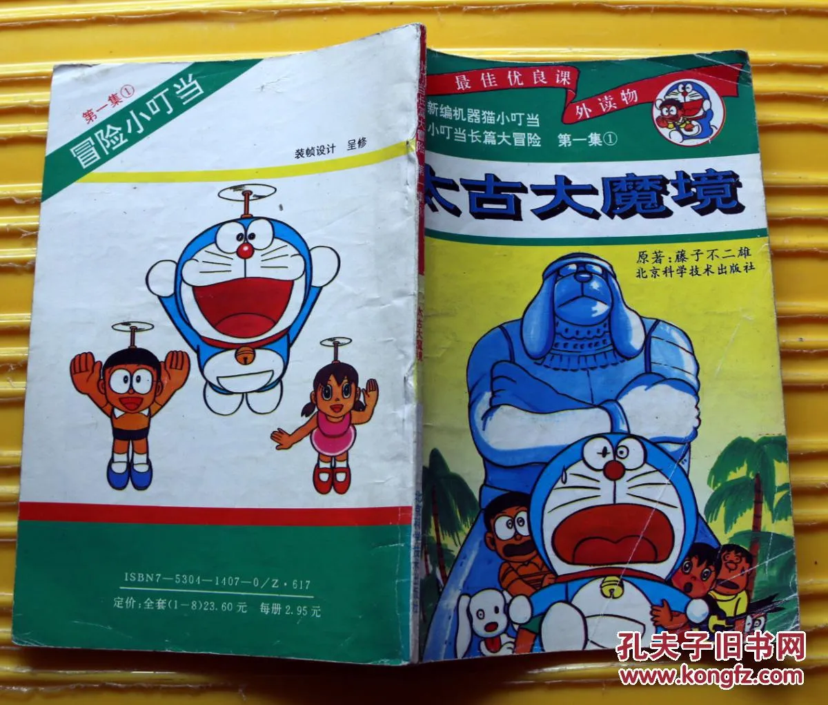 北京科学技术出版社还曾出版过一套《小叮当长篇大冒险》。从下图可知,其封面来自阳铭版,一套共8册,每册 2.95 元。推测出版于更早期,大约 1991 年左右,因此价格更加便宜。这8册内容应该对应于阳铭版第16册到第23册的大冒险长篇故事专辑。从书脊厚度推测,应该删除了原来每册附带的短篇内容,仅保留了大长篇内容。
